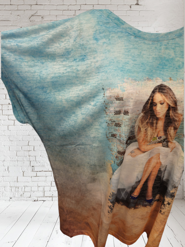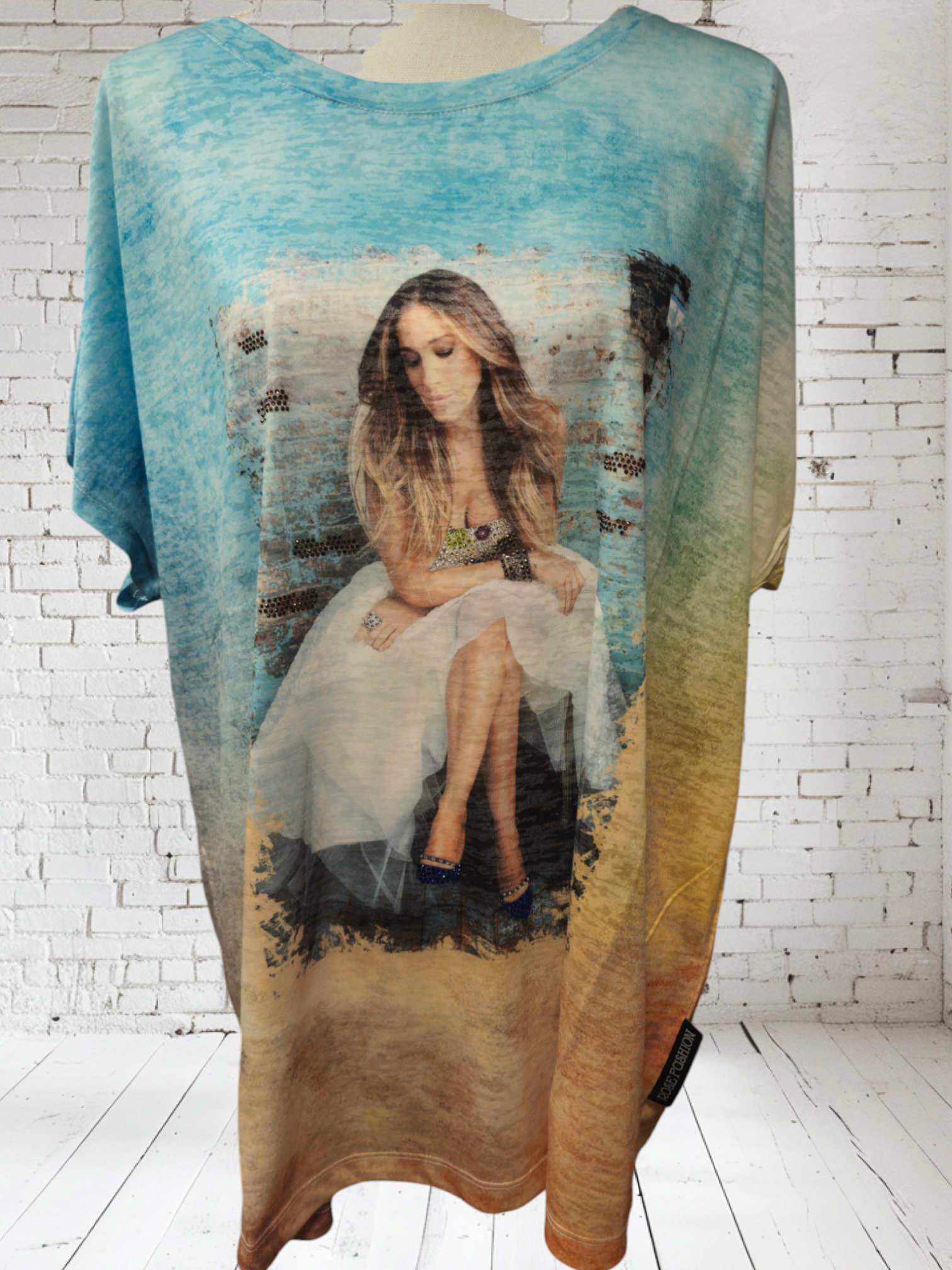Schönes, leichtes T-Shirt mit Print und Strasssteinen. Leichte Fledermausärmel.