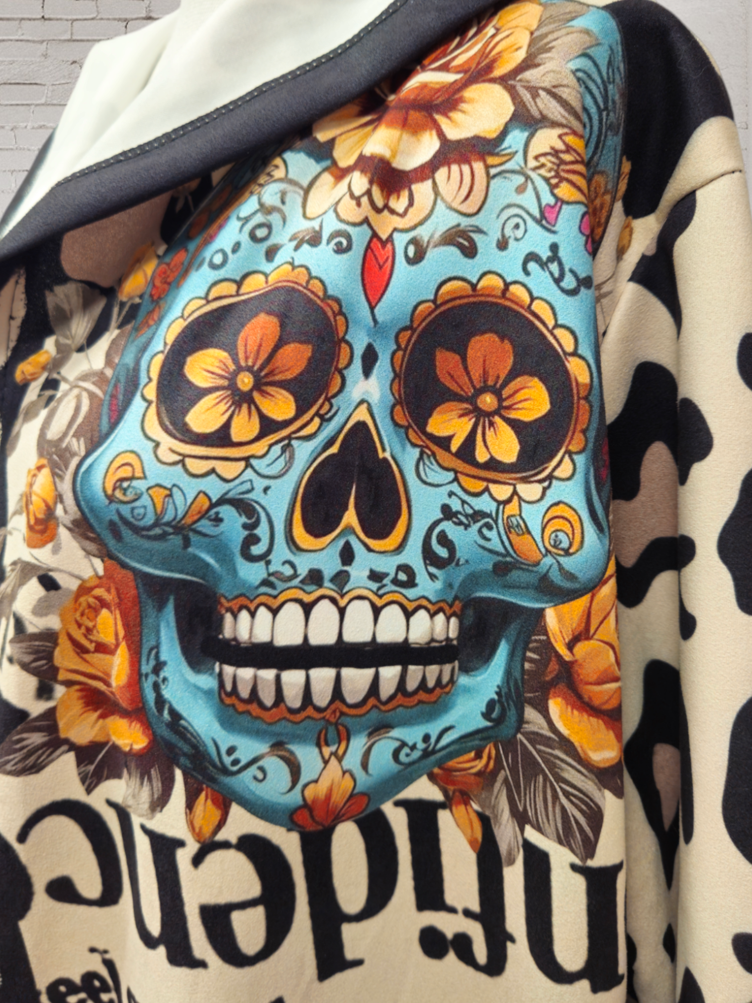 Longblazer mit Kapuze, ohne Knöpfung, mit seitlichen Taschen. Super angenehm zu tragen.