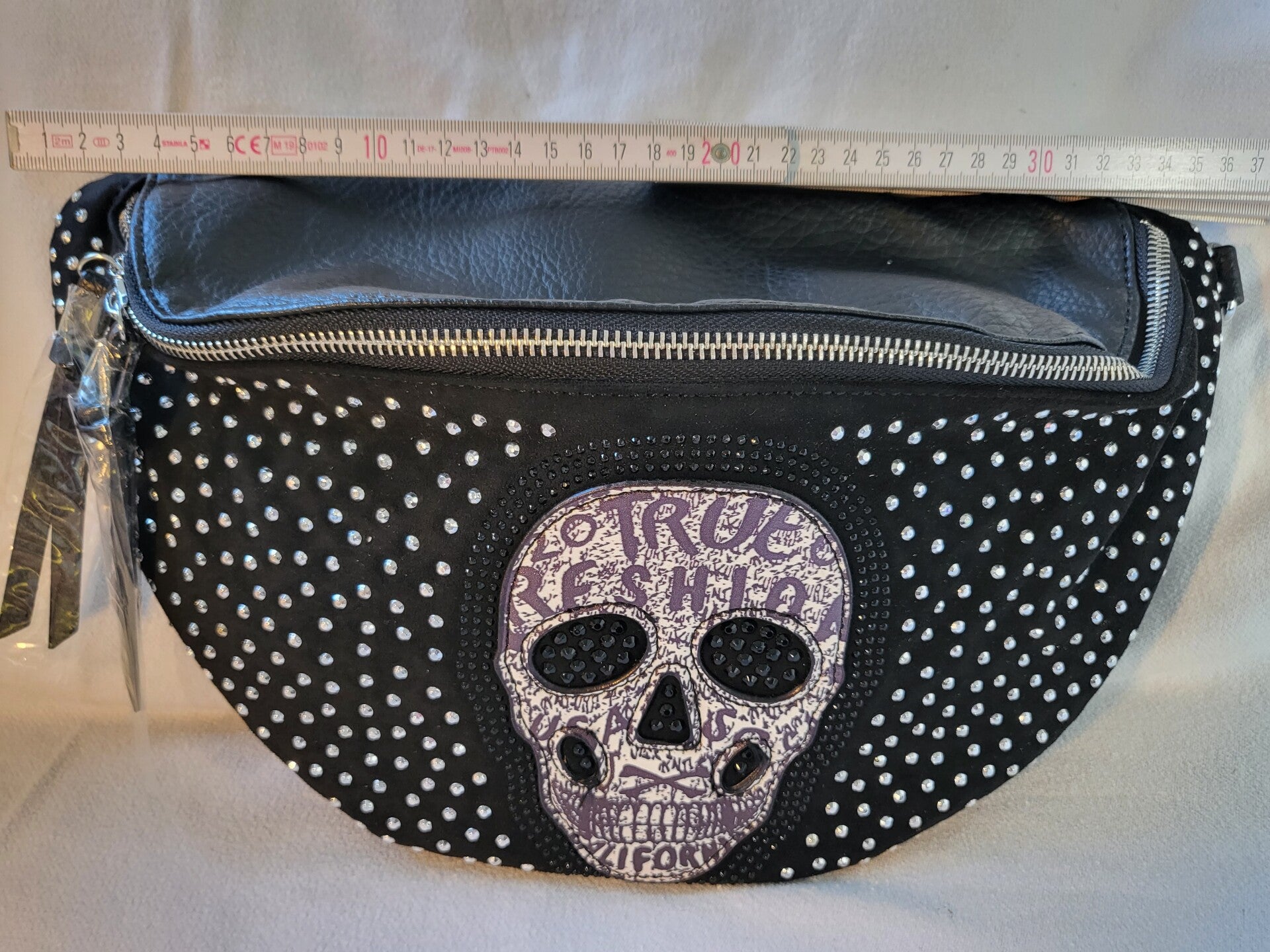 Brust- & Bauchtasche mit Totenkopf schwarz XL