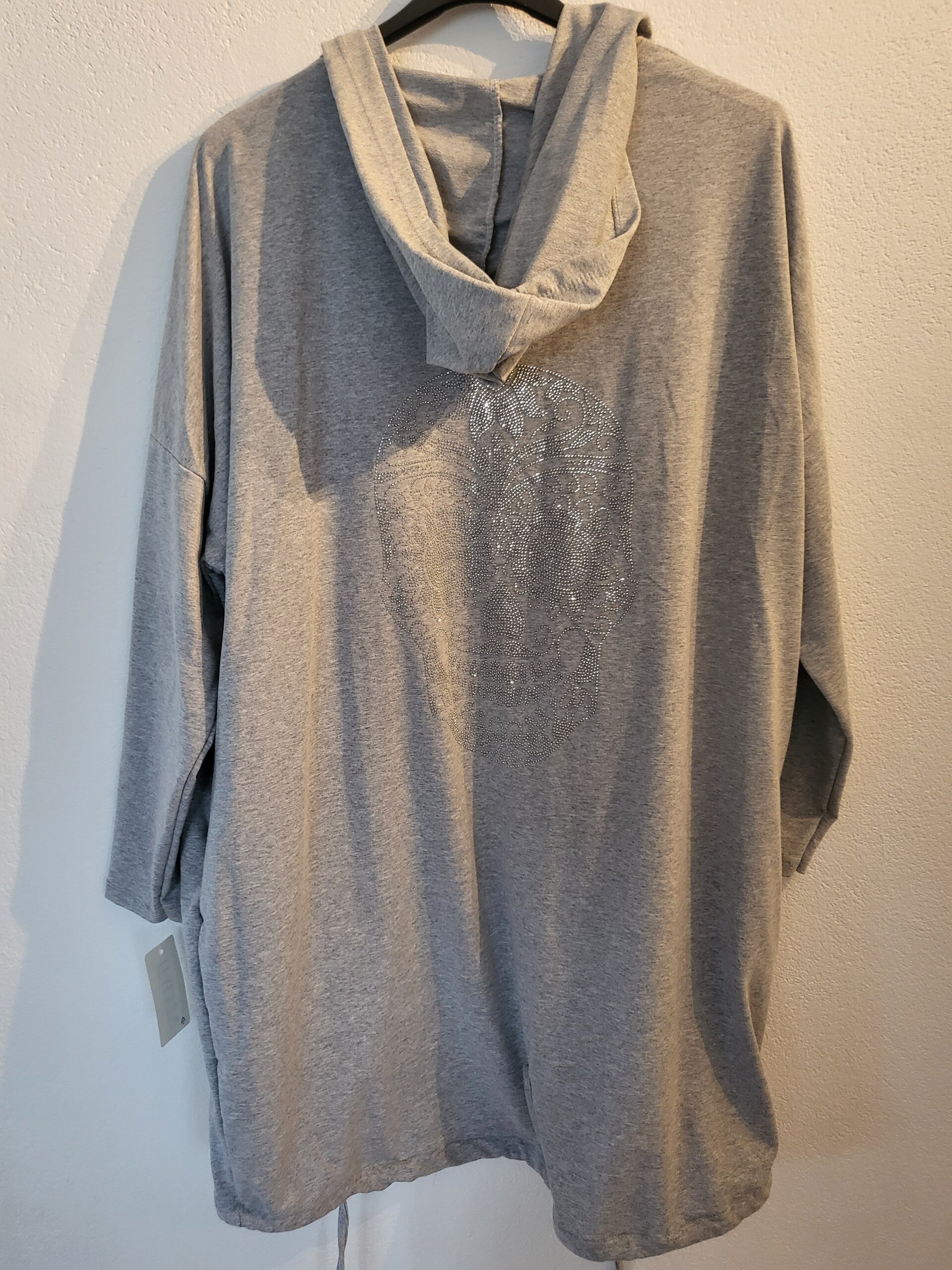 Cardigan grau mit Totenkopf, Gr. 38 -52/54, 1x verfügbar