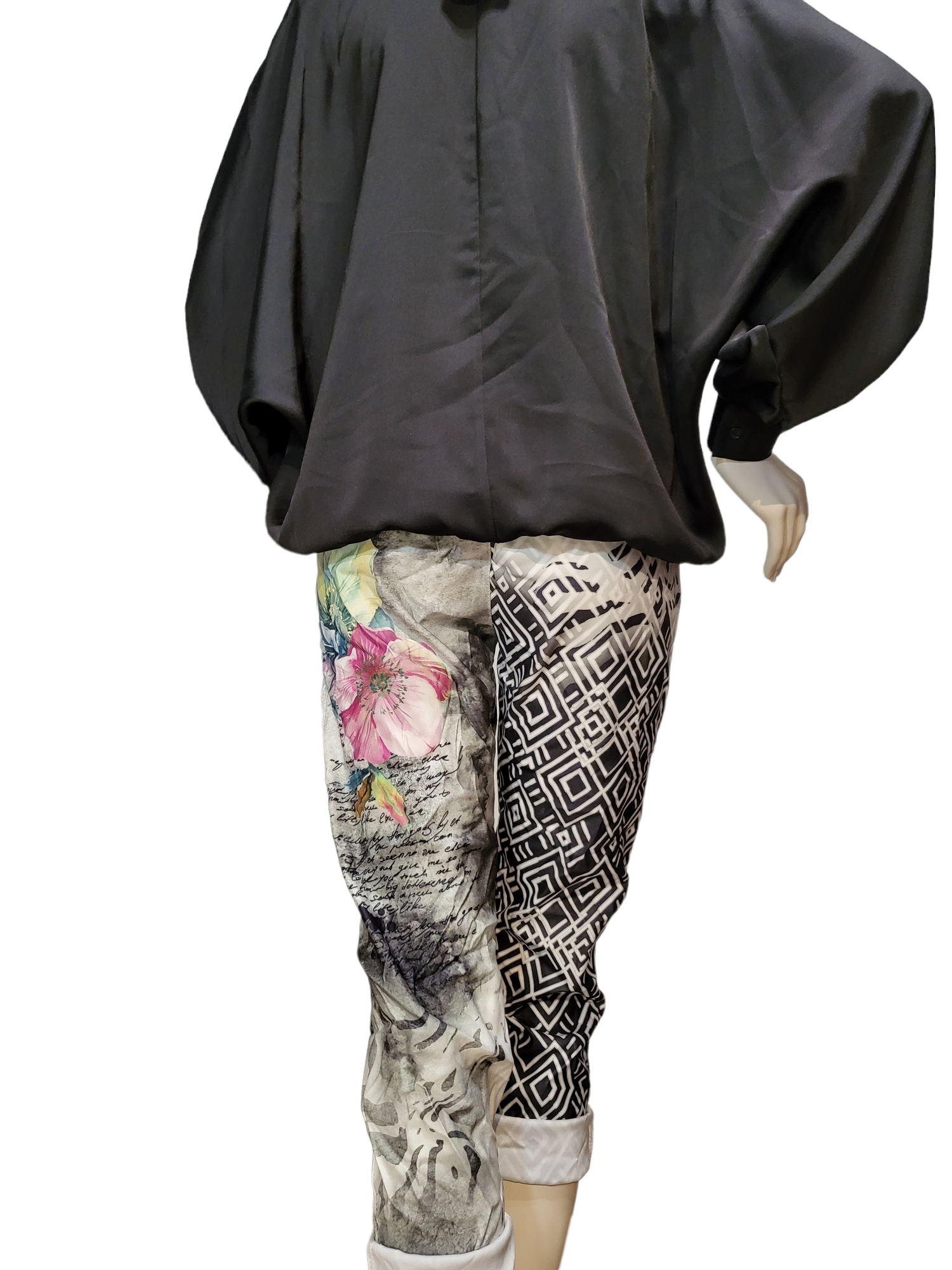 Hose schwar/weiss/grau mit farbigen Blumen, Gr. 38 - 42 - 2x verfügbar