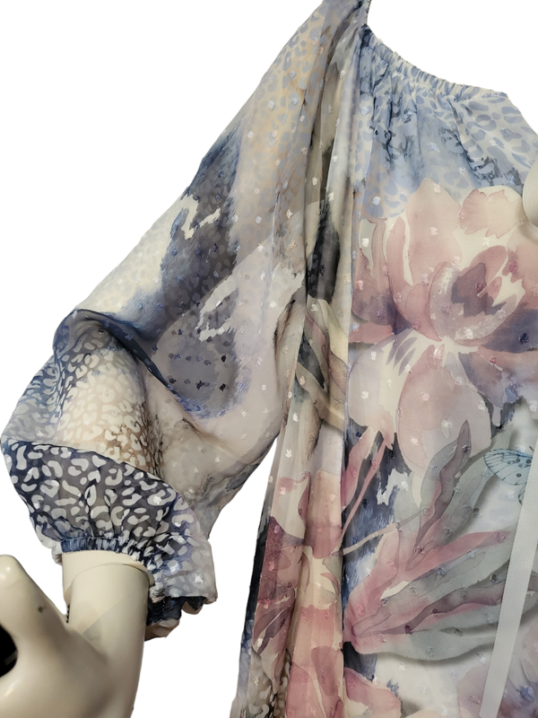 Bluse blau mit Blumen & Schmetterlingen, Gr. 36 - 42 - 1x verfügbar