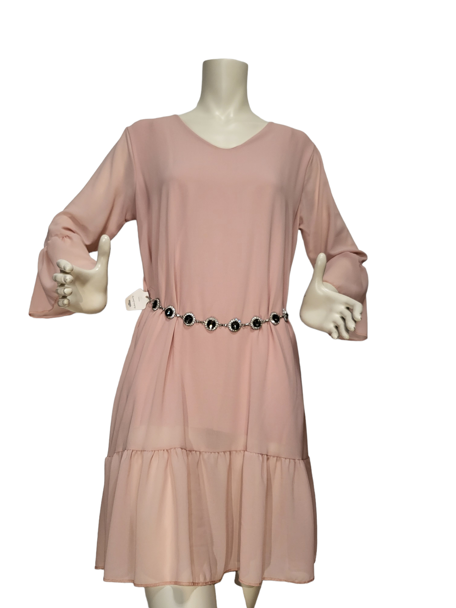 Kleid beige mit Gurtband aus Stoff, Gr. 36 - 42 - 1x verfügbar