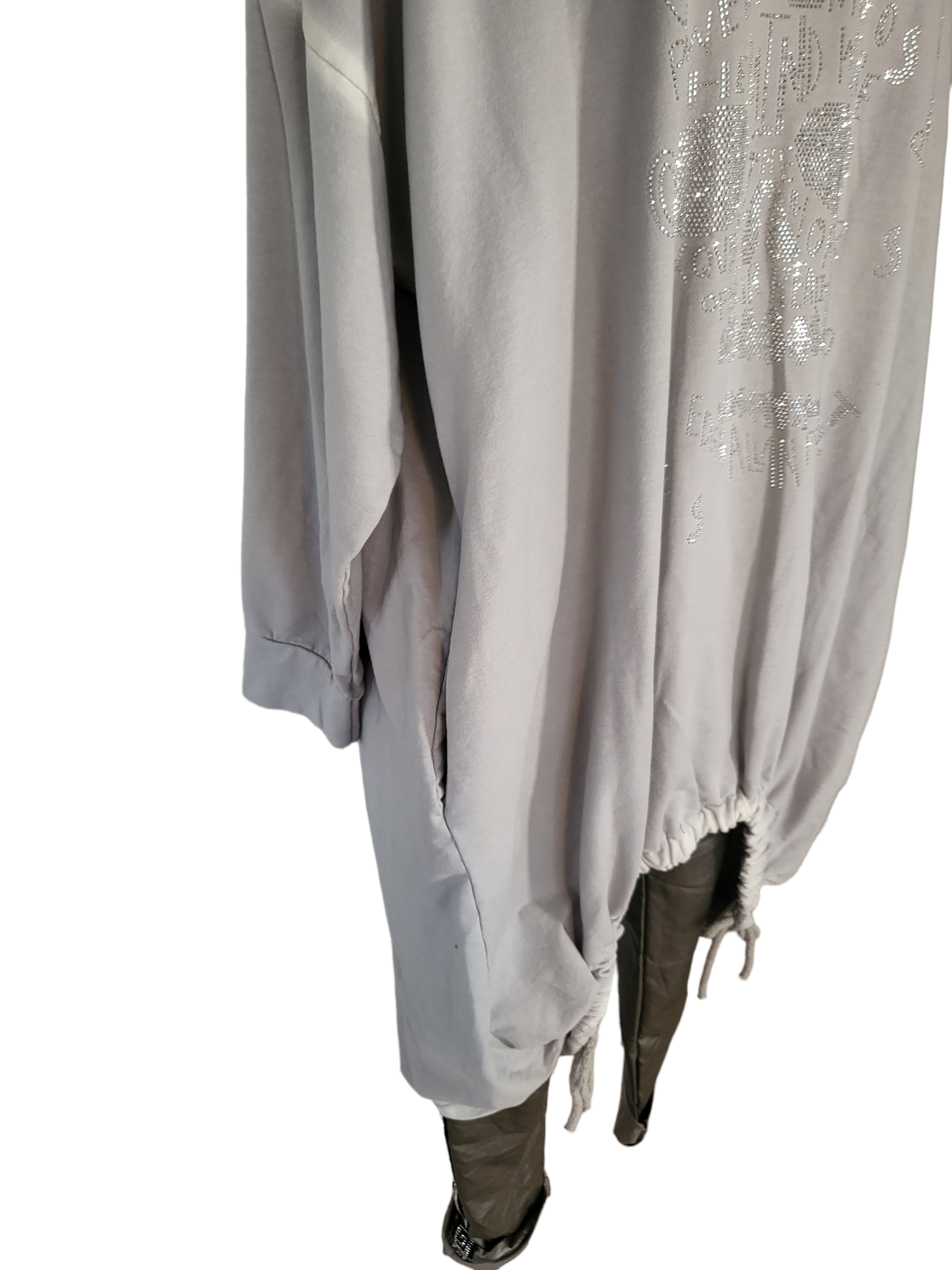 Longpullover XXL hellgrau mit Totenkopf, Gr. 44 - 48 - 1x verfügbar