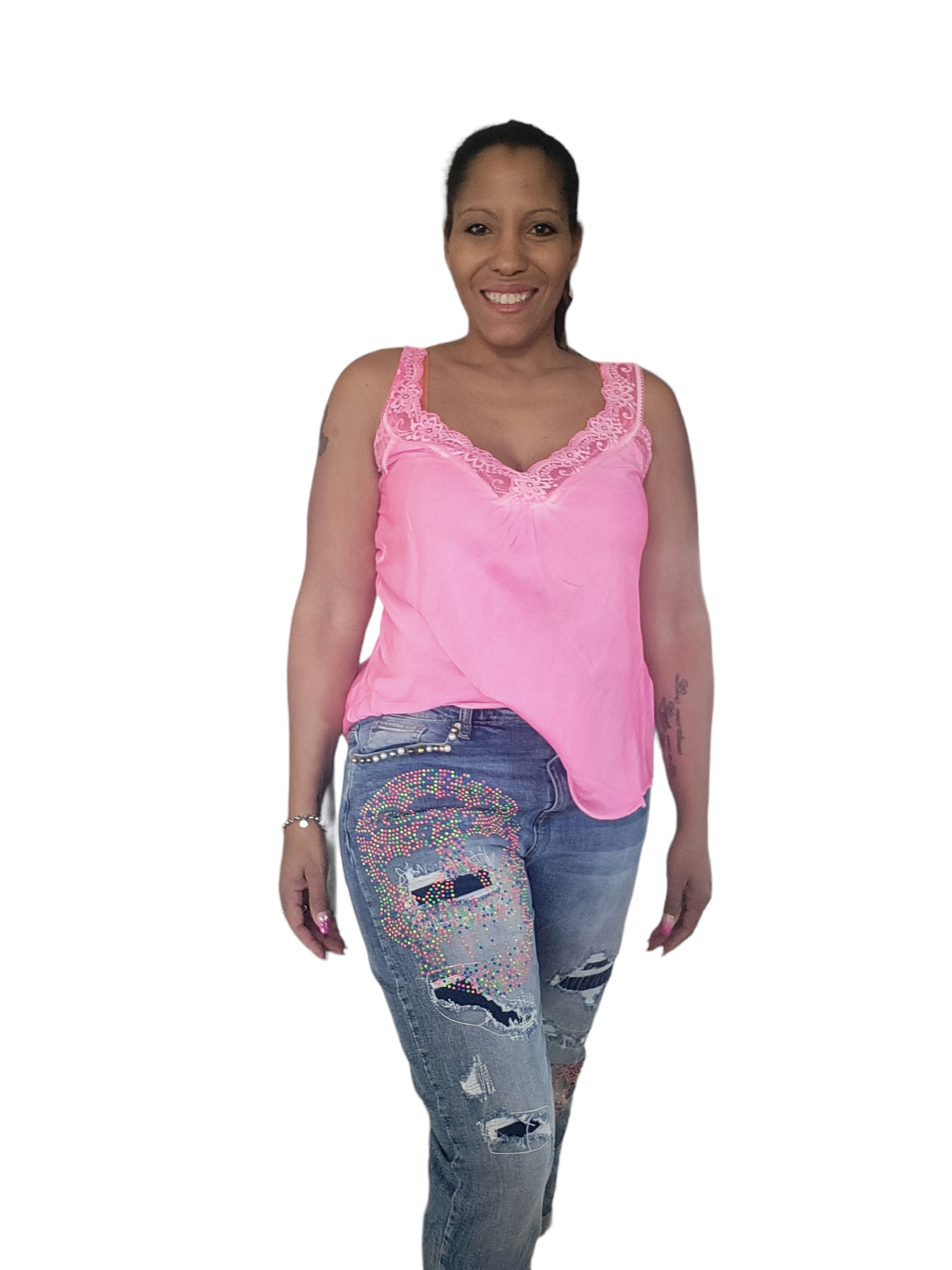 Jeans mit Totenkopf bunt, Gr. L (40/42) - 1x verfügbar