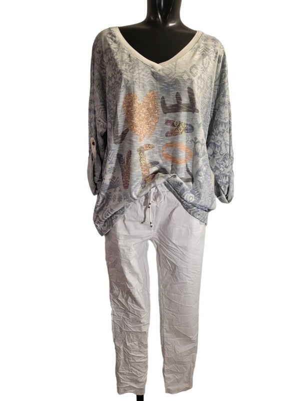 Shirt blau "LOVE", Gr. 38 - 42, 1x verfügbar