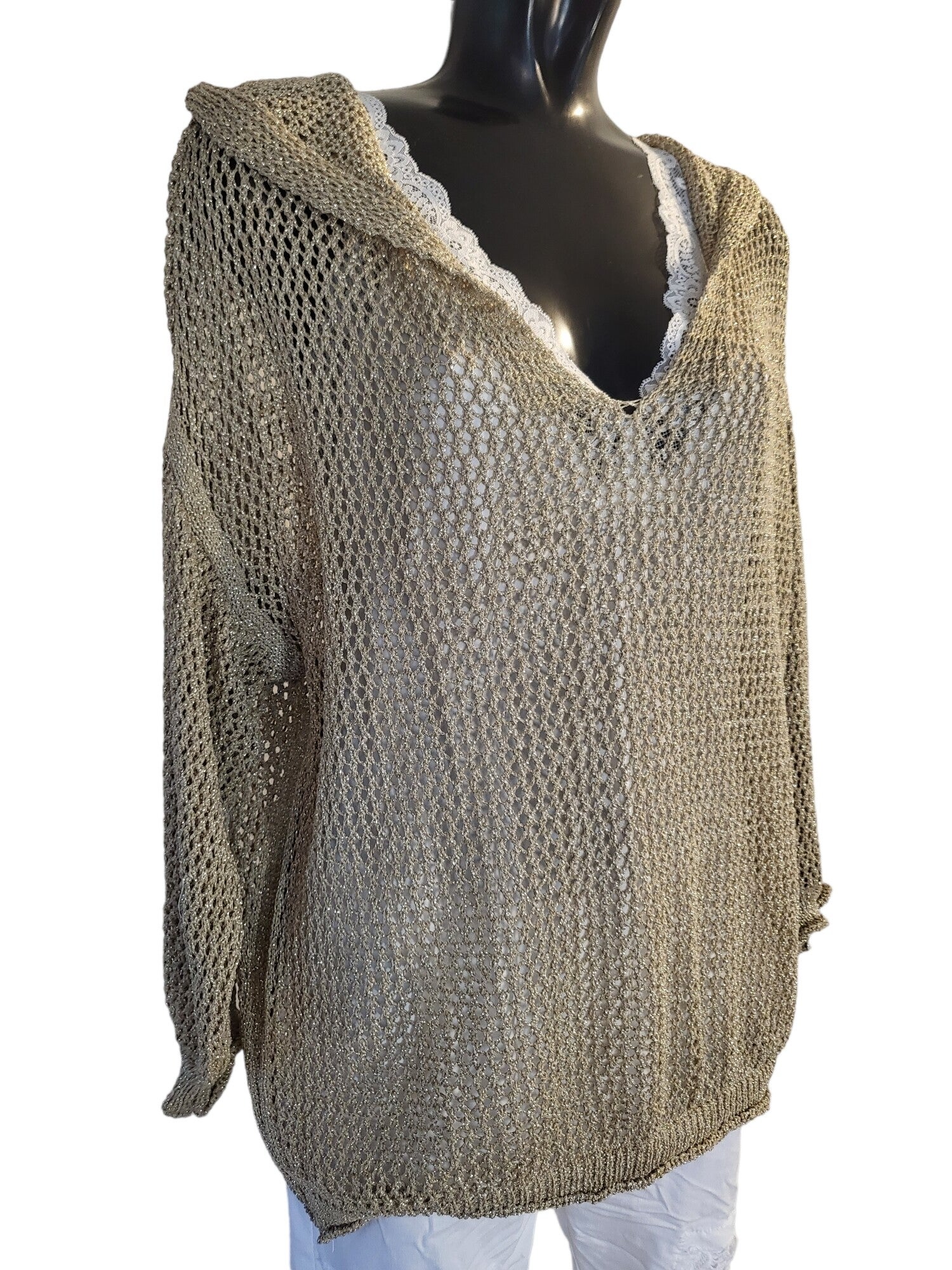 Strickpullover gold mit Kaputze, Gr. 36/38 - 40, 1x verfügbar